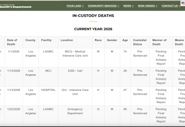 Yesterday, Tuesday, January 13, 2026, the third person died in Los Angeles County’s jail system...